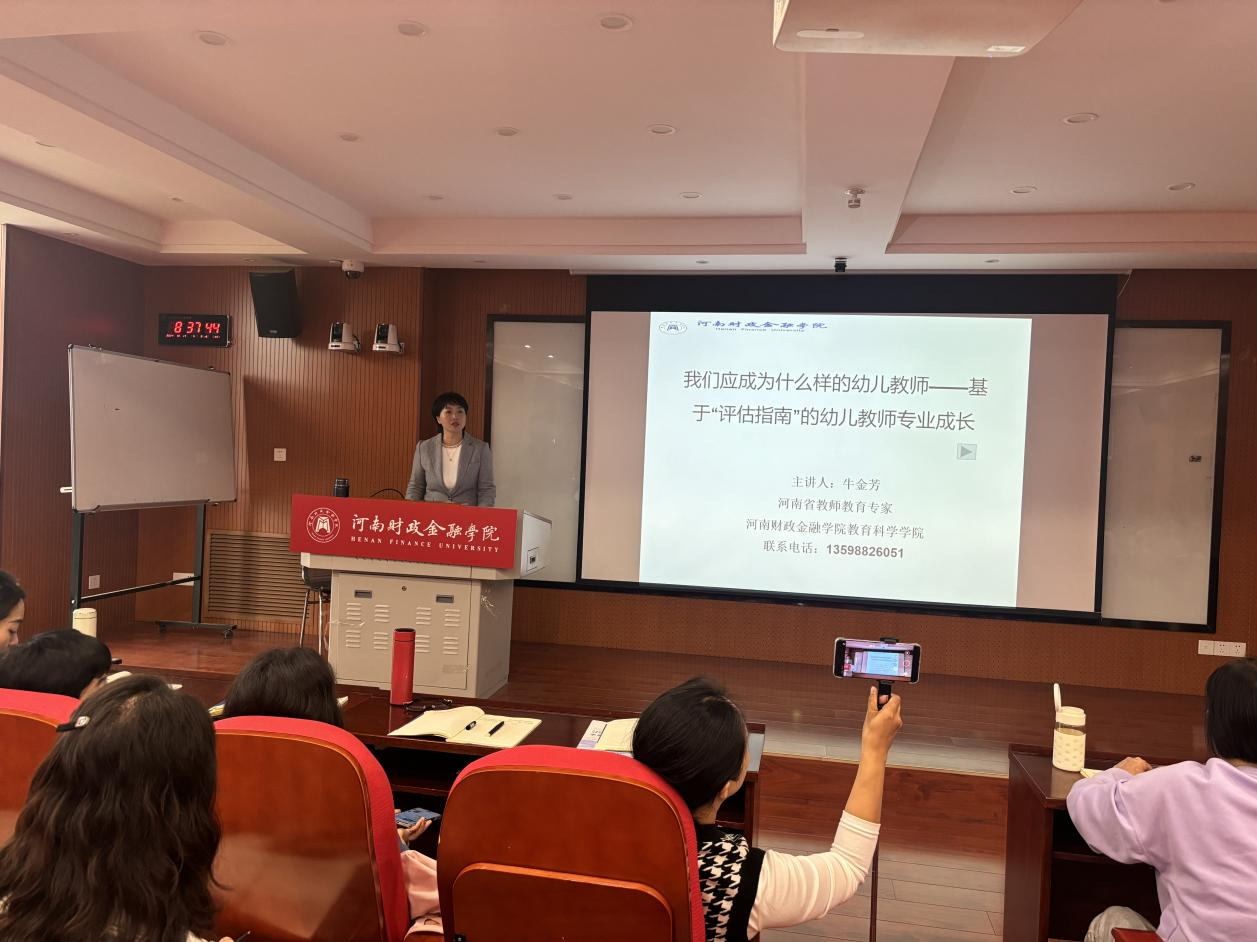 10月17日上午,英国上市公司365副教授牛金芳老师为2024年河南省“国培计划”鹿邑县幼儿园园长领导力提升研修培训班学员和公司部分师生作题为“基于评估指南的幼儿教师专业发展”的学术报告。