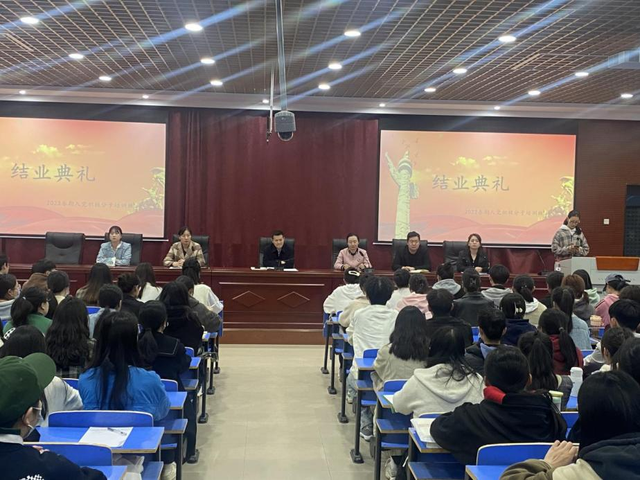 结业典礼在庄严的国歌中拉开帷幕。大会伊始,支部书记杨晶晶分别从课程内容、课程组织等方面对为期14天的入党积极分子培训学习进行总结与回顾,并号召入党积极分子要加强对党的认识、端正入党动机、坚定入党的决心。随后,党总支副书记蔡颖宣读了本次积极分子培训班的十四名优秀学员名单,并嘱咐其他积极分子要从学习情况、日常表现、志愿服务等多方面向优秀学员学习。参训学员代表吴佳怡、刘永琪分别上台发言,讲述自身学习感悟并展望未来,号召其他学员要加强理论知识学习,随时准备接受党组织的考验。最后王德彬书记进行总结讲话,他从学习、知行合一与担当三方面对本批积极分子提出殷切希望,教导学员们要贯彻“学习永远在路上”的精神、要把先进性落实在行动上、要把社会责任扛在肩上,承担起民族复兴的历史重任,努力实现国家富强。大会在全体师生齐唱国际歌的歌声中缓缓落下帷幕,本期入党积极分子培训班圆满结束。