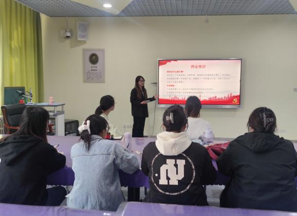 活动中,薛梦洋同志带领全体党员学习习近平总书记在全国两会期间的重要讲话精神,以及政府工作报告的有关内容,分别从“两会常识”“两会重要讲话”以及“两会热词”三个方面进行解读。随后薛梦洋同志组织大家观看视频“全国两会热词新词”,同学们在观看视频后对时事热点有了更加深入地了解。最后,与会党员紧紧围绕本次活动主题,发表自己的学习心得和感受。