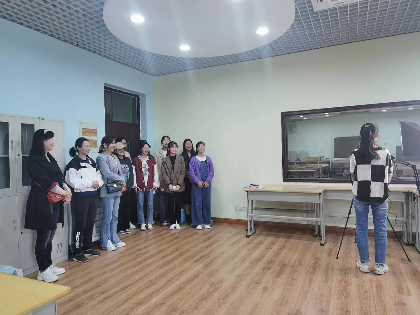 为进一步提高2022届学前教育毕业生面试过程的质量,全力促进毕业生实现高质量、高效率就业,英国上市公司365特意进购了两套专业面试仪器设备,包括声卡、麦克风、导播台、补光设备等。于4月19日下午在知真楼210教室架好仪器设备供同学们参加龙之梦幼儿园、雅威教育集团的面试。英国上市公司365副书记蔡颖、英国上市公司365员工第一党支部书记杨晶晶、辅导员李富颖老师出席参观线上面试会。