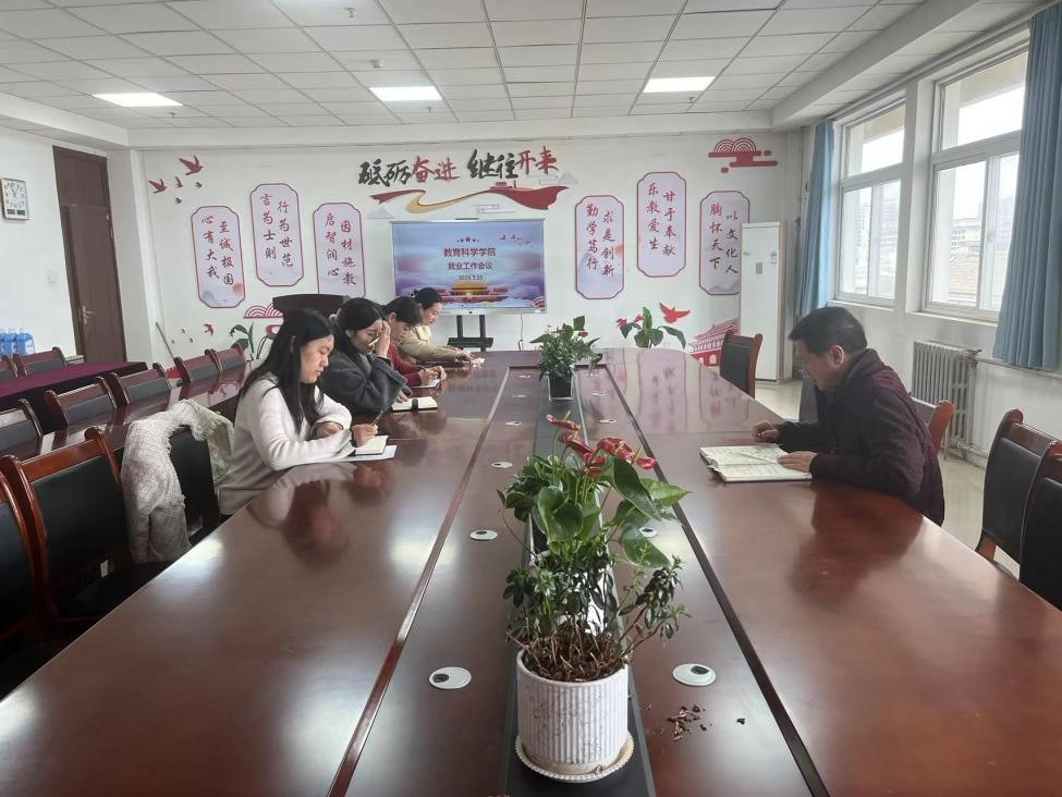 3月25日上午,在知行楼727会议室,公司召开就业工作专题会议暨考研指导工作会,党总支书记王德彬、副书记蔡颖,带领辅导员杨晶晶、王若华、胡怡铭参加本次会议。