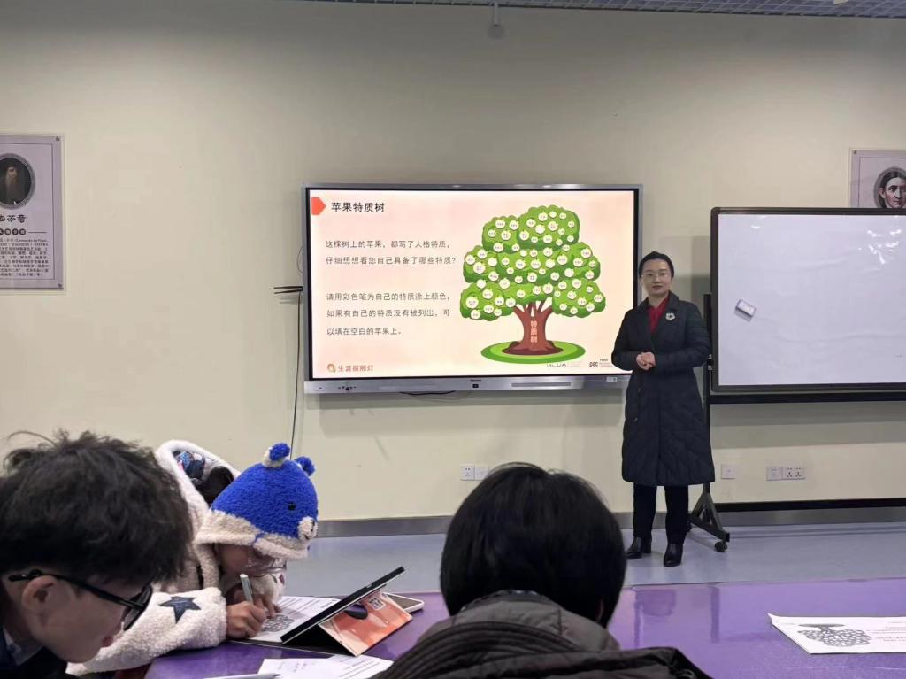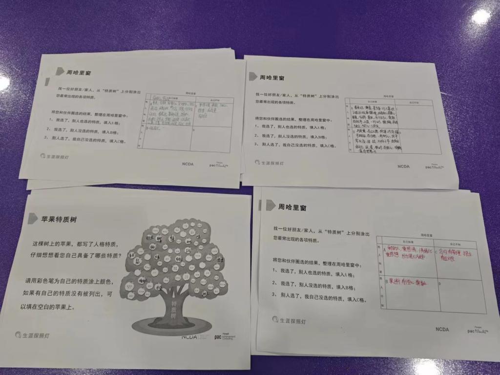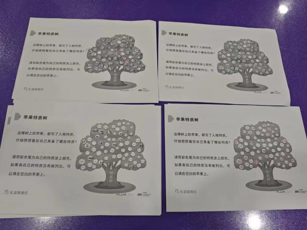 本次活动由英国上市公司365的蔡颖老师负责主持。蔡老师从气质类型理论讲起,通过举例子帮助同学们理解这个理论的概念。然后蔡老师让大家进行MBTI人格测试,并且对每位同学的人格类型进行分析。接下来蔡老师带领大家进行苹果特质树活动,让同学们把符合自己特质的苹果涂上色,并且完成周哈里窗表,帮助同学们深入了解自己,审视自己,最后蔡老师带领同学们进行价值观大拍卖的活动,让同学们选出最符合自己价值观的三个工作价值观项目,蔡老师对每位同学的做出的选择进行分析讲解。