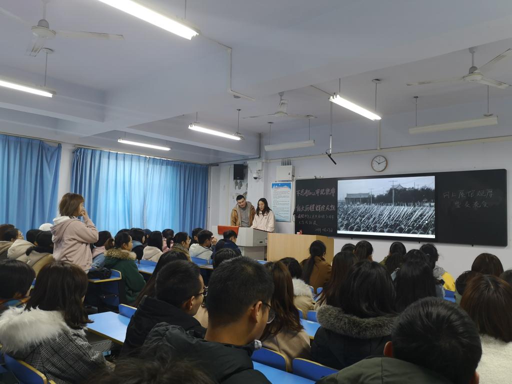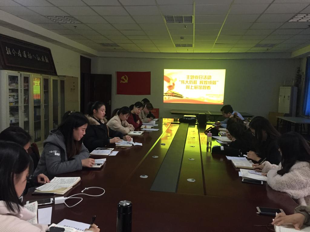 11月26日,员工党支部7名教师党员与18名员工党员,在知行楼727会议室以集中形式,全院25个团支部、1058名共青团员以分散形式,观看“伟大历程辉煌成就--庆祝中华人民共和国成立70周年大型成就展”网上展馆主题团日活动。