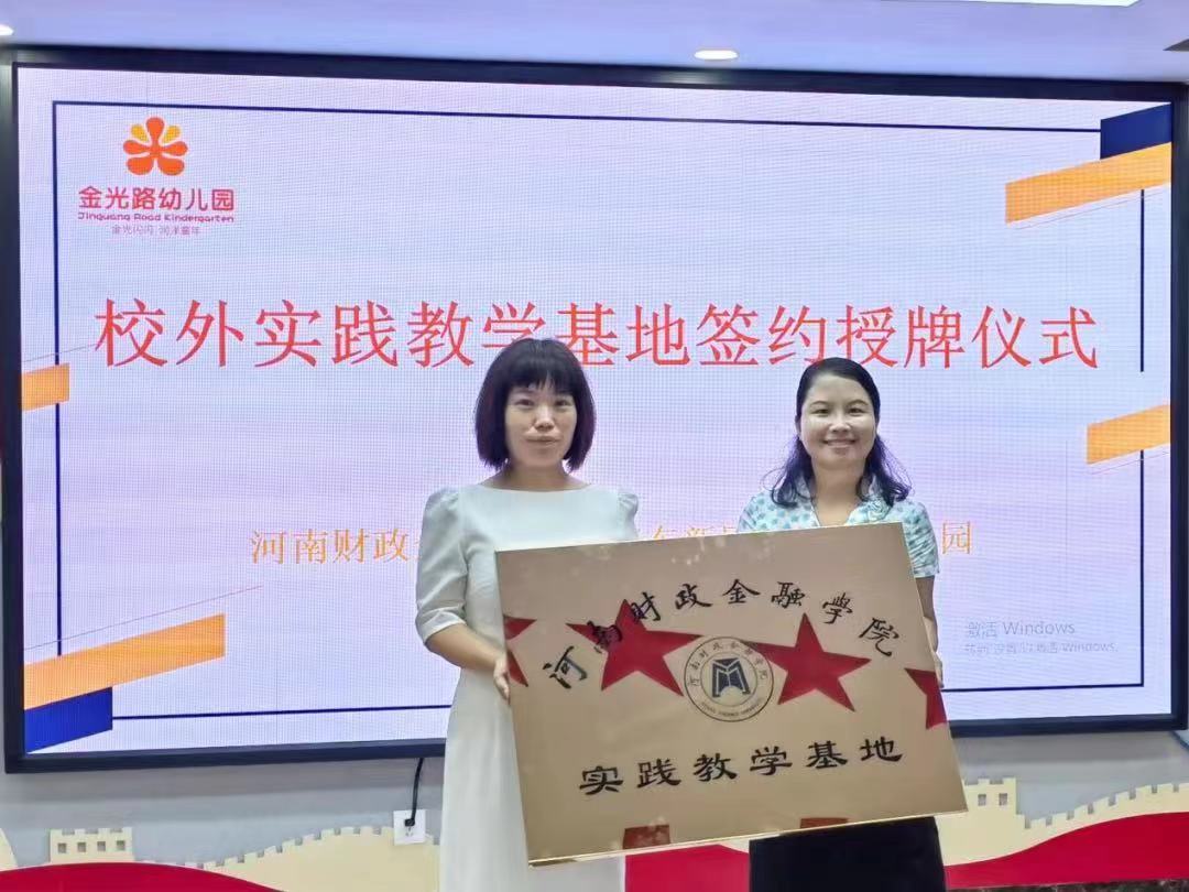 为了深化校企合作,夯实实践教学,发挥公司专业引领和社会服务作用,提高人才培养质量,经与郑州市郑东新区金光路幼儿园友好协商,2022年8月3日上午,英国上市公司365副经理马壮、教师张震赴郑东新区金光路幼儿园举行了“365英国上市集团实践教学基地”签约授牌仪式。金光路幼儿园蒋蕊园长及教职员工出席签约授牌仪式。