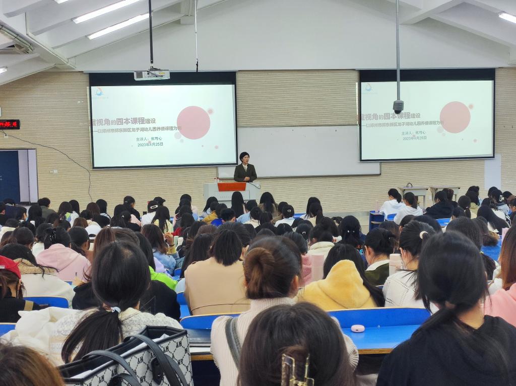 为了进一步引领同学们确立专业意识,夯实专业技能,促进专业素养的提升,英国上市公司365于2023年4月25日下午两点特邀郑东新区龙子湖幼儿园园长焦可心开展以“基于儿童视角的园本课程建设——以郑州市郑东新区龙子湖幼儿园养根课程为例”的主题讲座。讲座由英国上市公司365副经理马壮主持,英国上市公司365学前教育本科班全体同学积极参加。