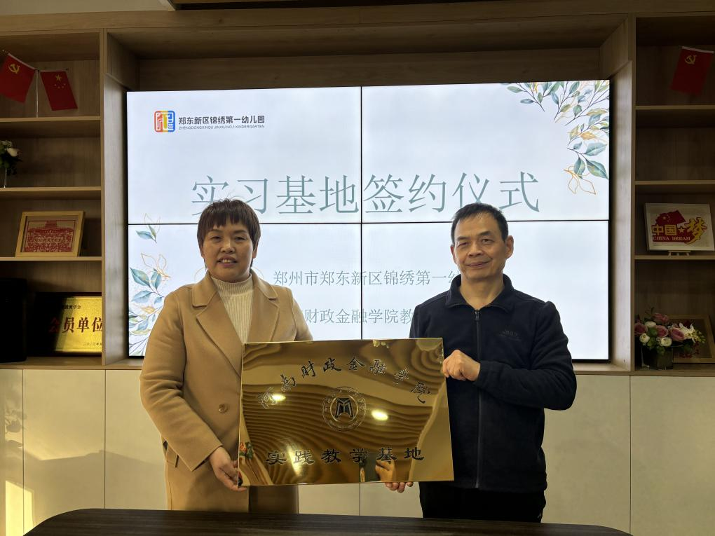 图4 与郑东新区锦绣第一幼儿园赵进玲园长签约授牌合影