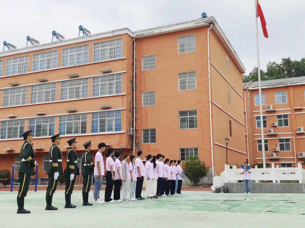 2024年7月7日,在这个特殊的日子里,河南财政金融公司“卢遇有约,新质提升”社会实践服务团联合校国旗护卫队在卢氏县兰草红军小学举行升旗仪式。