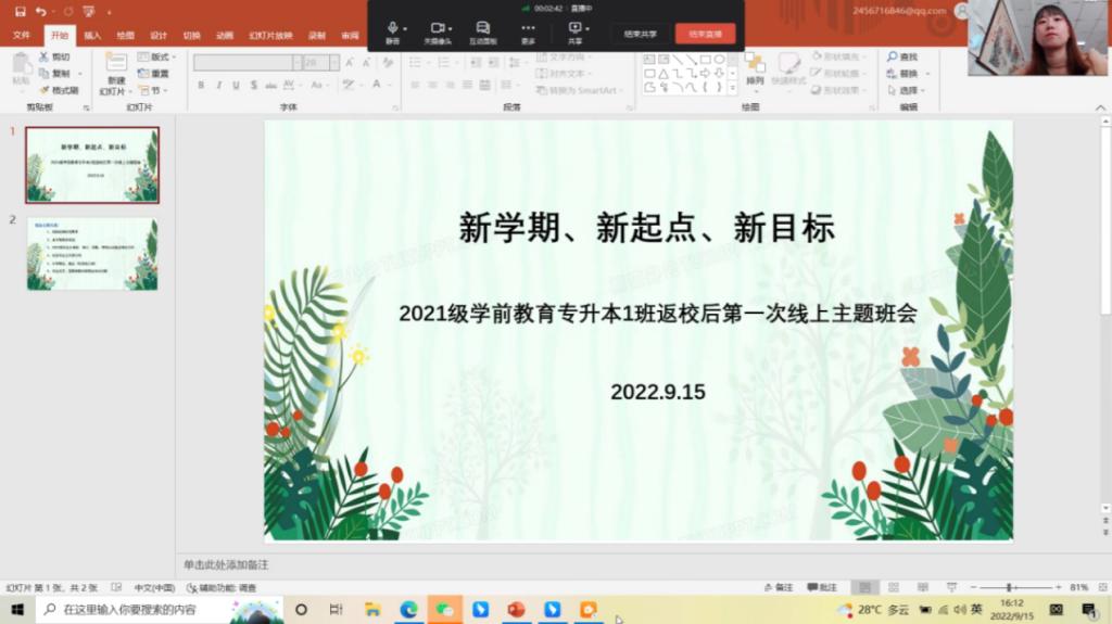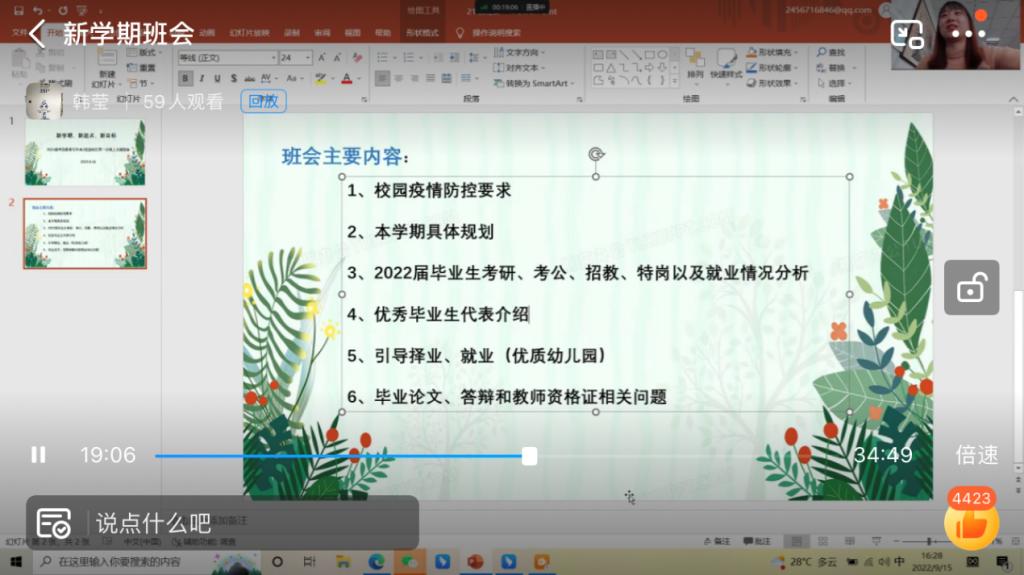 9月15日,下午4点,公司2021级学前教育专升本1班共61名师生,开展了新学期线上主题班会,本次班会由辅导员韩莹主持。
