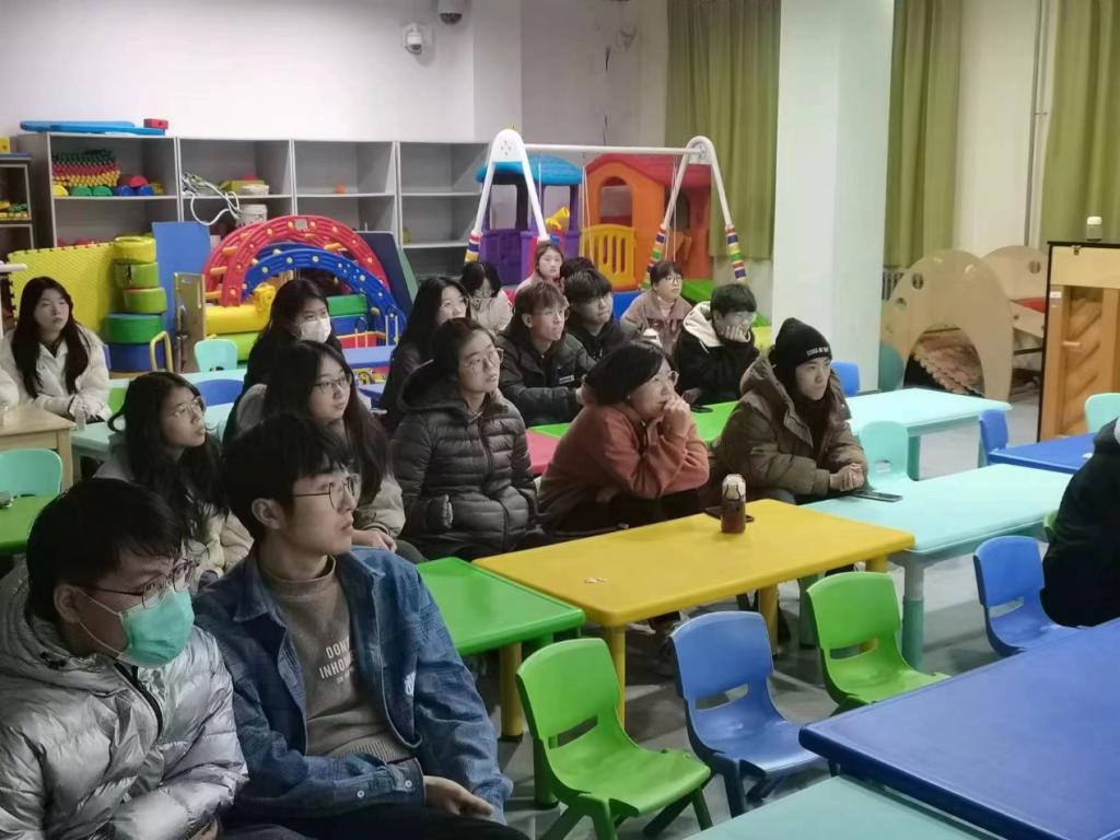 第一部分观影结束后,我们开始了第二个环节——玩小游戏,这个游戏环节旨在活跃一下社团气氛,增进协会成员之间的交流。我们玩的小游戏一是:2.5元游戏。大家分散开来,规则是一位戴眼镜的同学代表一元钱,不戴眼镜的同学代表五角钱,主持游戏的人随便叫一个价格,大家在10秒内要迅速围成一圈或者聚在一起,没能凑足够的钱的同学需要上来表演一个才艺。小游戏二是:击鼓传花游戏。音乐开始时,成员们传递道具,如果音乐停下时,道具在谁的手上,就由谁来介绍自己并进行才艺表演(没有才艺接受绕口令惩罚)。两个游戏结束后协会成员们都意犹未尽,期待着下次活动的开展!