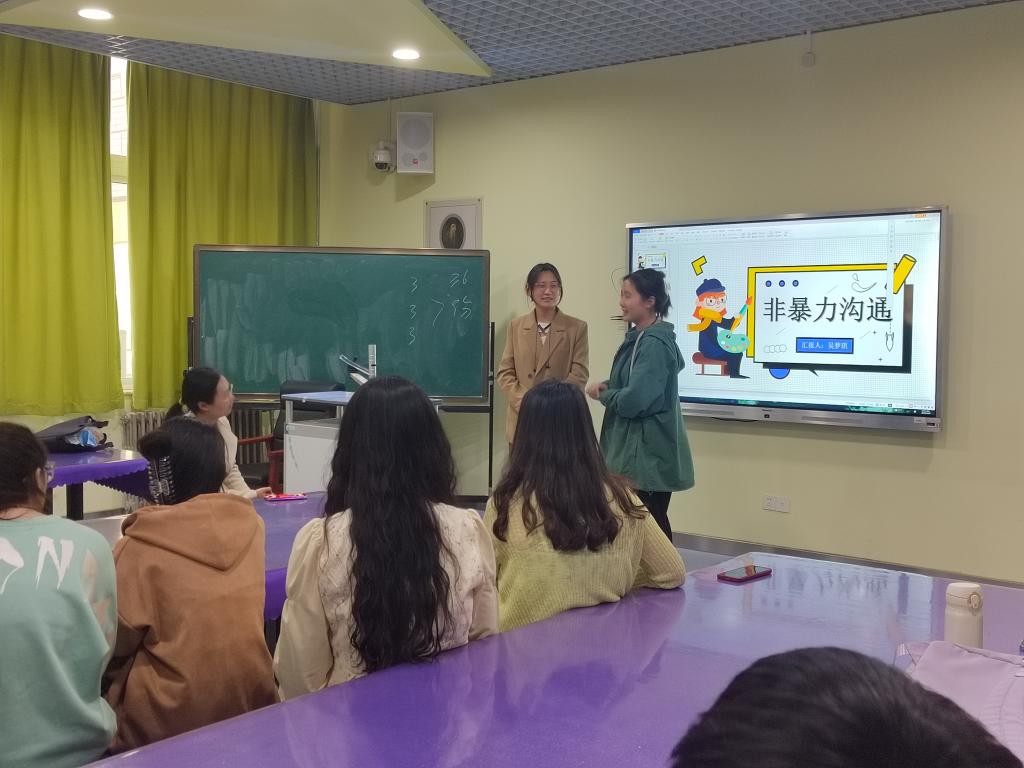 本次活动由社团负责人吴梦琪主持。活动开始时,由吴梦琪同学对本次讲座进行介绍,首先使同学们对本次讲座内容有一个充分的认知。之后,吴同学对心理类书籍《非暴力沟通》进行作品解读,首先介绍本书的作者:马歇尔.卢森堡,使同学们对于书籍和作者有一个大致的了解。然后深入探究书中涉及到的心理学知识并普及与此相关的心理学家。通过社团负责人带着大家对书籍的深入学习,同学们逐渐认识到了潜藏在生活角落当中那些不被人注意的隐蔽的暴力。然后,由社团负责人从暴力沟通的来源、如何做到非暴力沟通、非暴力沟通的练习三个方面,带领大家深入学习相关知识。最后由社团负责人对本次活动进行总结,为本次团体活动画下完美的句号。