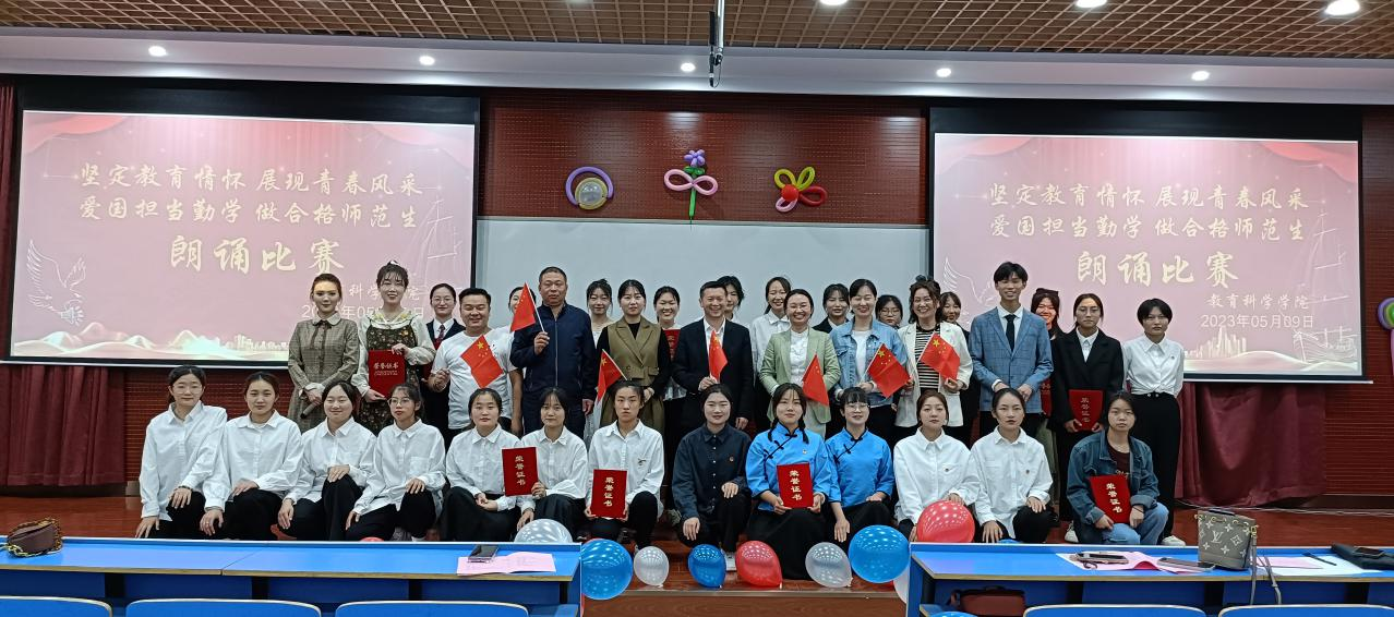 本次大赛以“爱国、担当、勤学、做合格师范生”为主题。每一组选手在舞台上以铿锵有力的气势,充沛饱满的热情,自信大方的形象赢得了评委老师和同学们的阵阵掌声。《愿以吾辈之青春,守卫这盛世中华》《传承爱国者,青年勇担当》《青春心向党,奋进新征程》《青春中国》等节目,通过同学们精彩的演绎弘扬了伟大的爱国主义情怀和国家使命感,表达了教科院学子的爱国、担当、勤学意识;《心中有信仰,肩上有担当,做勤学教科人》《甘将心血化时雨,润出桃花一片红》《勇担时代使命,争做合格师范生》《做一棵树,寻一缕光》以及《做新时代有担当师范生》等节目热情歌颂了身为师范生所需的舍己为人、无私奉献的高尚情操,表达了教科院学子扛起师范生责任的决心与勇气。他们的精彩表现也赢得了台下阵阵掌声和欢呼声。经过激烈的角逐以及评委老师公正认真的评分,最终评选出一、二、三等奖。