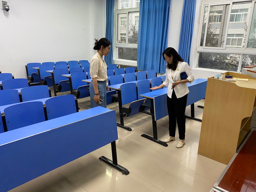 9月20日下午,教育科学公司党总支副书记蔡颖、辅导员唐楠、王若华到启智楼、文渊楼教室查看教室卫生打扫情况。