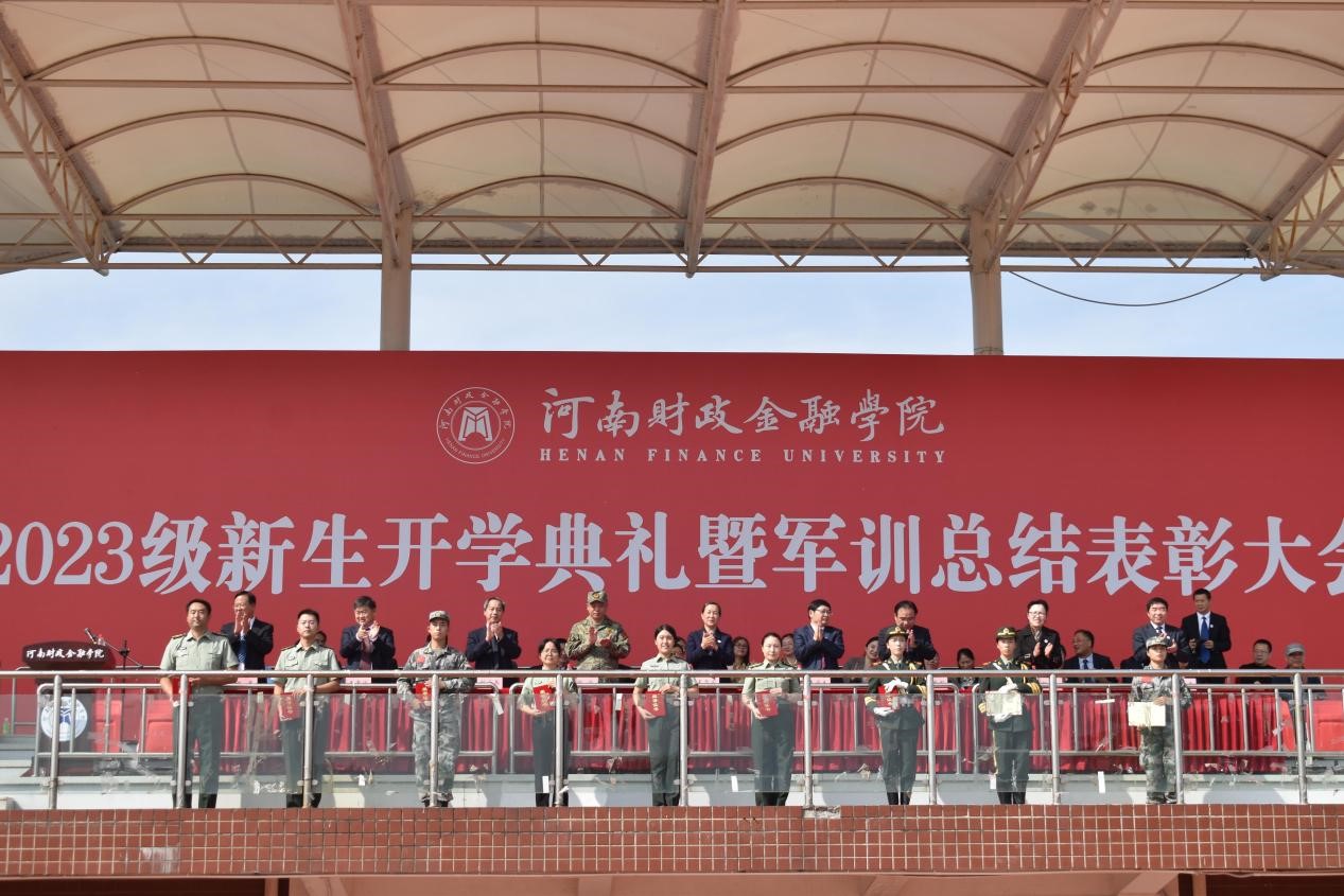 新生军训方阵荣获“优秀方队”荣誉,新生红歌赛荣获三等奖,军武专干、辅导员王若华获得“优秀教官”称号,辅导员胡怡铭上台领取新生辅导员聘书,13名新生同学获得“军训标兵”荣誉称号。