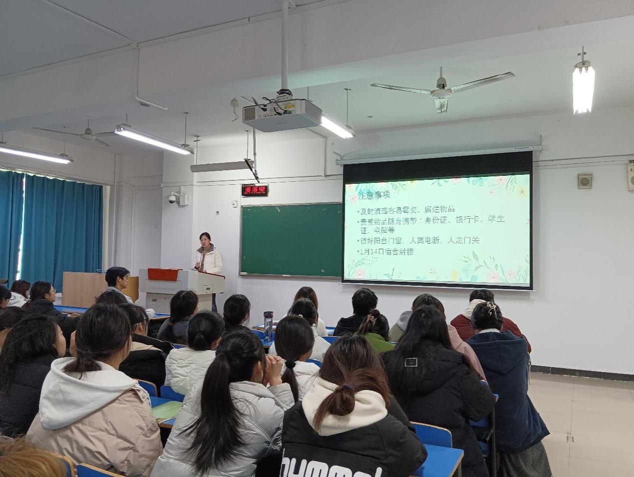 会议上,杨老师对员工进行放假前的安全教育,重点围绕人身安全和财产安全展开讲解,详细介绍了假期中各类易发生的安全问题的防范措施与应对方法。特别提醒同学们,离开宿舍时要切断电源、锁好门窗,时刻保持警惕,切实保护好自己,将安全教育真正落实到位。最后总结道:“安全无小事,无论何时何地,大家都要将安全放在首位,确保度过一个平安、愉快的假期。”同时,杨老师还预祝同学们在期末考试中取得优异成绩。同学们纷纷表示,安全是一切的基础,只有确保自身安全,才能更好地追求学业进步和个人成长。